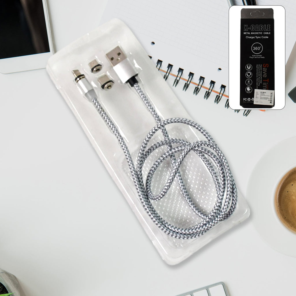 Magnetic Charging Cable, 3 in 1 Nylon Braided Fast Charging Cord Magnetic Charger USB Cable for iPhone / Micro USB / Type C Mobile Phone, Fast Charging Magnet Charger USB Wire Cord Detachable (1 Pc)